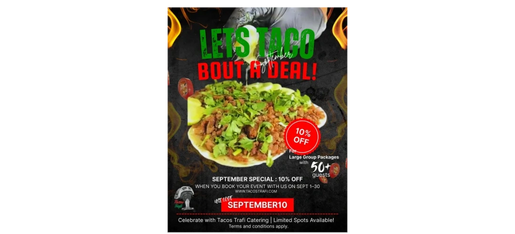 Tacos Trafi offers taco cart catering for all events, from business lunches to weddings and birthdays. Whether your gathering is 10 people or over 1,000, we’re ready to serve up the authentic taste of our tacos and make your occasion memorable. Let us bring flavor to your next event!