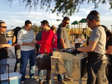 Our team arrives 2 hours before your serving time to set up, prep, and ensure all food is hot and ready. We bring everything we need - no power or water required!